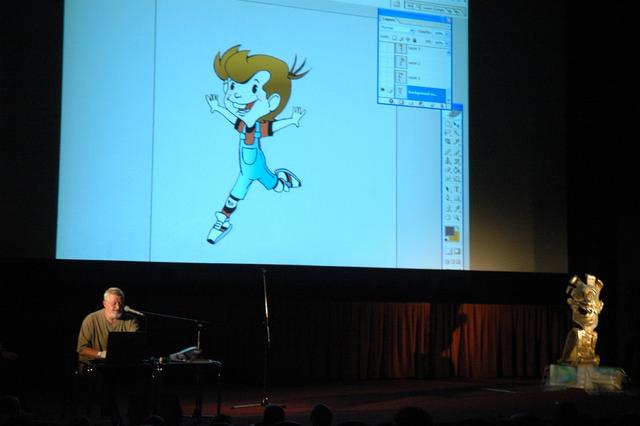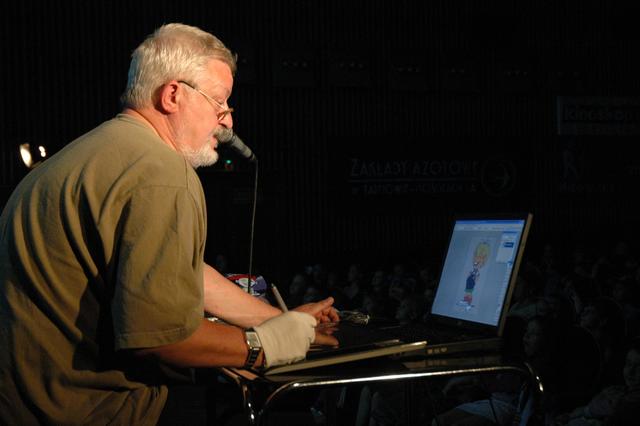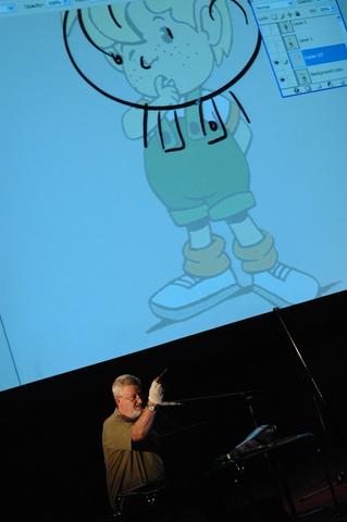 Przed projekcjami, rysownicy ze Studia Filmów Rysunkowych, Marian Cholerek i Roman Nehrebecki przybliżają dzieciom jak tworzy się filmy animowane.