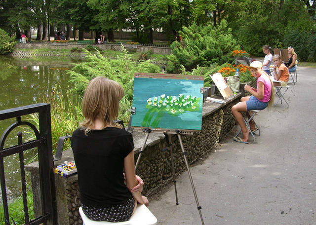 Elżbieta i Witold Pazerowie, prowadzący zajęcia plastyczne, zaproponowali cykl spotkań w plenerze (teren bulwarów nad Wątokiem, Park Sanguszków, Park Strzelecki, Rynek i jego okolice) oraz w pracowni plastycznej w Tarnowskim Centrum Kultury. Zainteresowani mieli okazję nauczyć się podstaw warsztatu plastycznego, poznać zasady właściwego komponowania płaszczyzny, nauczyć się postrzegania związków koloru ze światłem i przestrzenią. Podczas zajęć był czas na swobodną pracę z wykorzystaniem różnych technik plastycznych: tempera, rysunek ołówkiem lub tuszem, monotypia i inne.