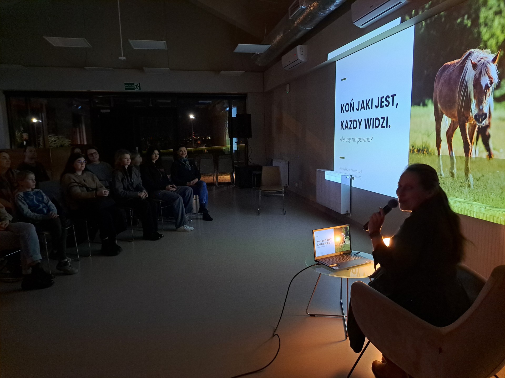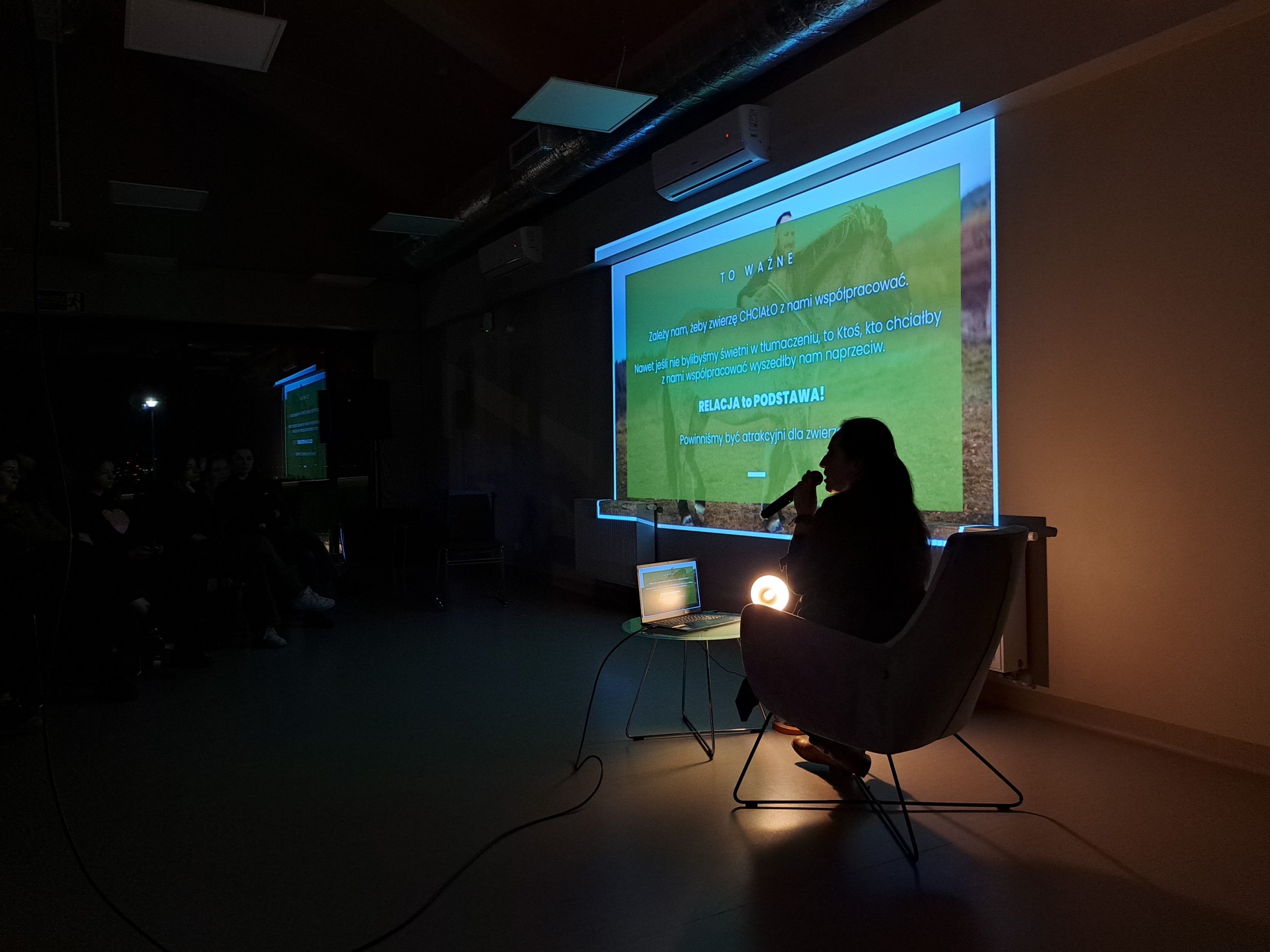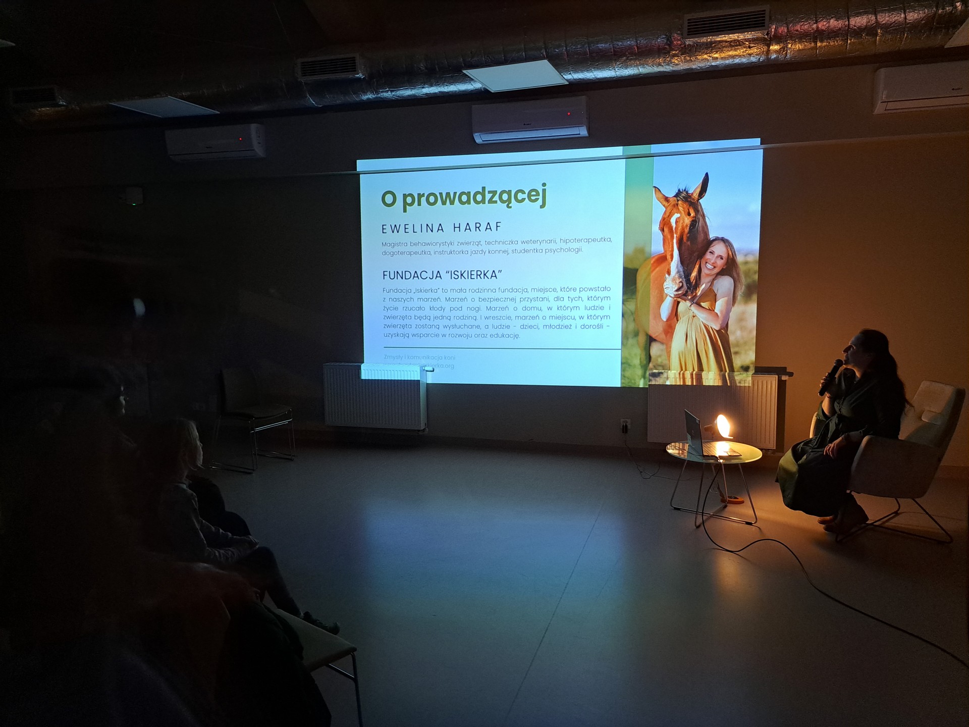 Spotkanie z behawiorystką Eweliną Haraf z Fundacji Iskierka. W trakcie spotkania Ewelina przybliżyła nam świat koni ich zmysłów i komunikacji oraz opowiedziała więcej o języku tych niezwykłych stworzeń i w jaki sposób ich obecność może wpłynąć na nasze życie i relacje z innymi.