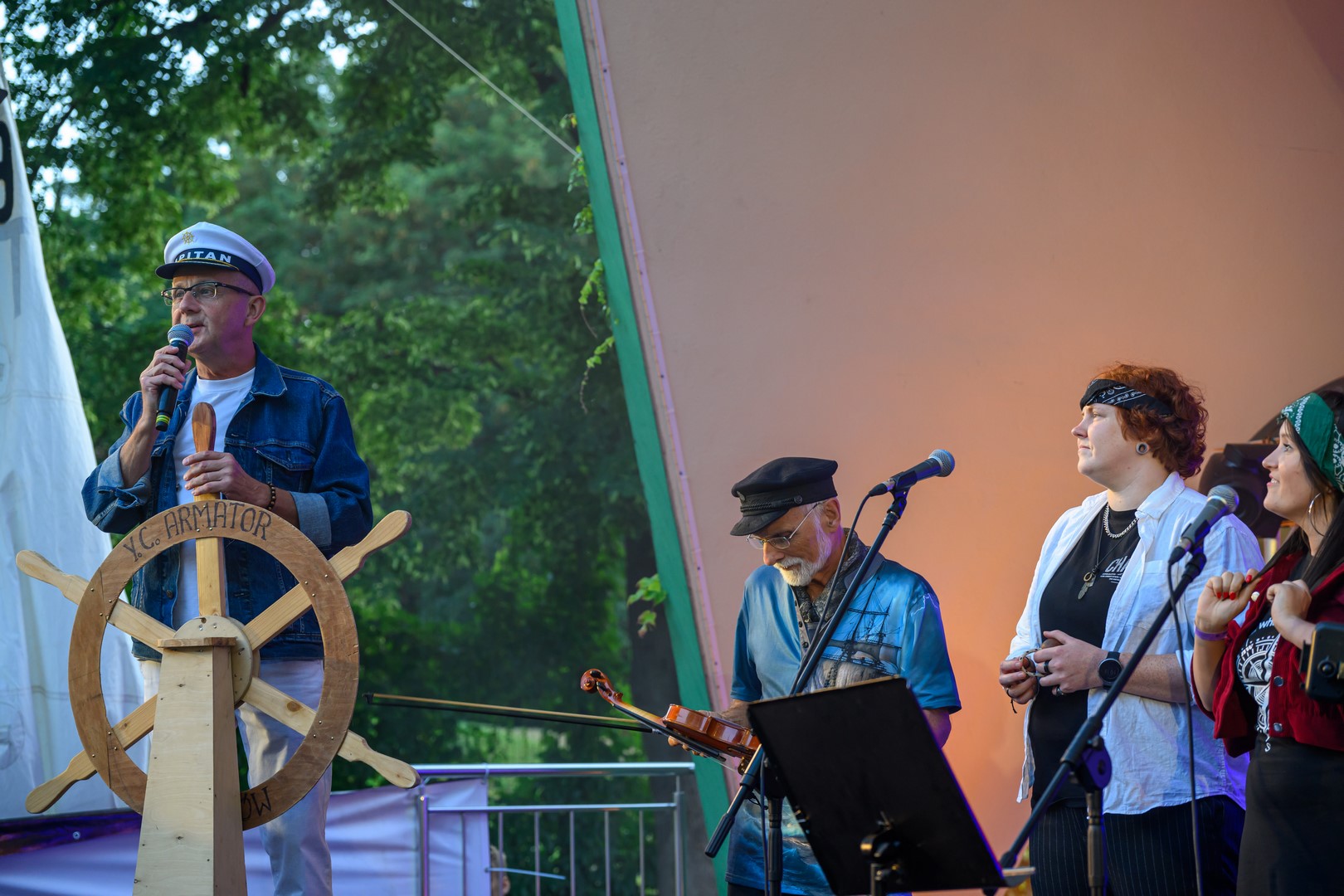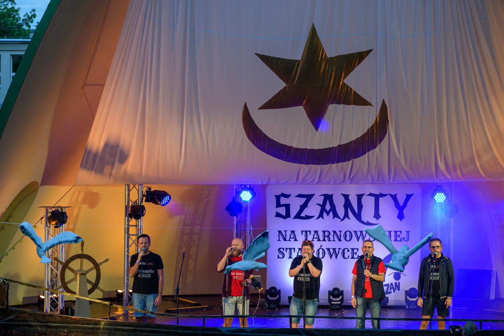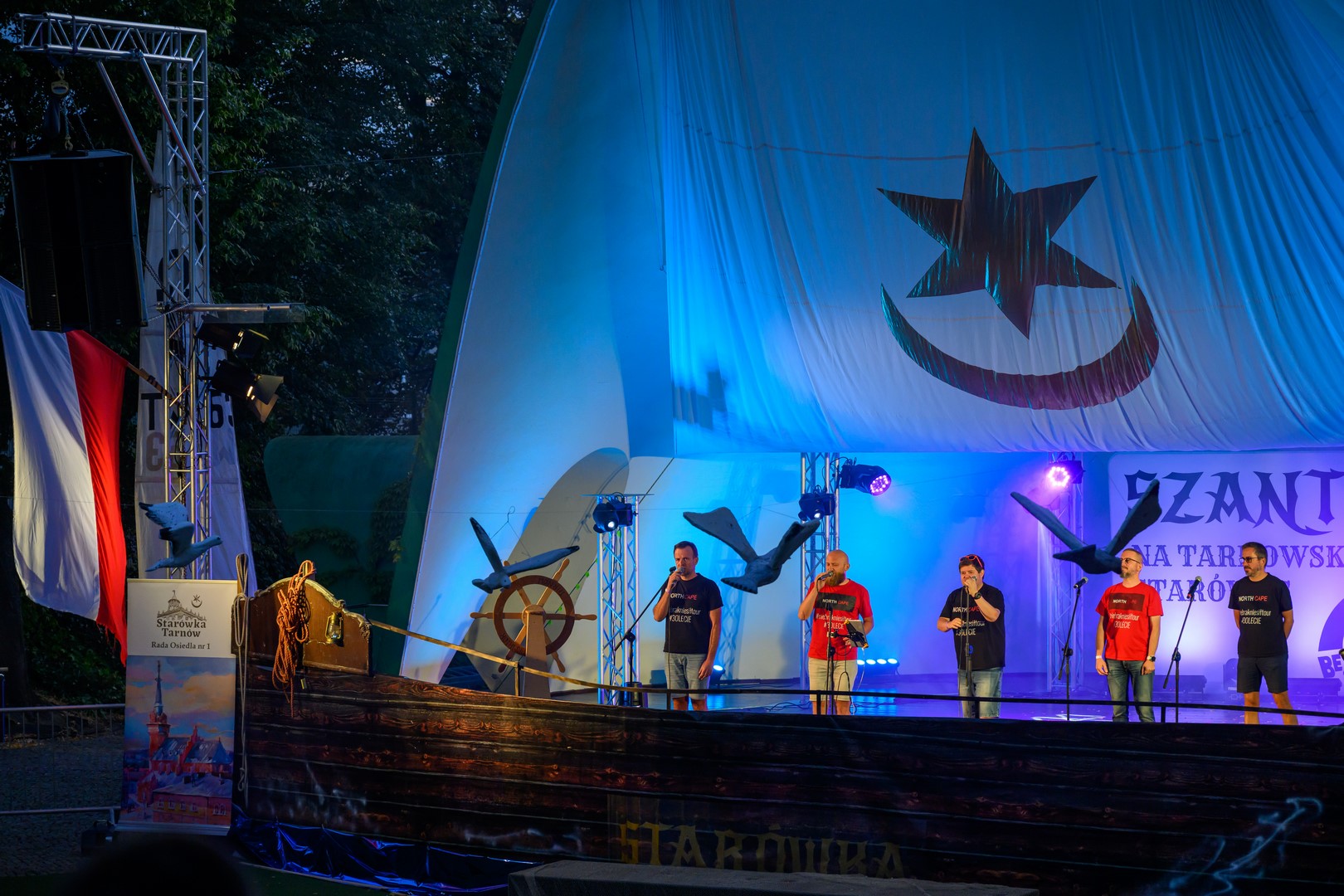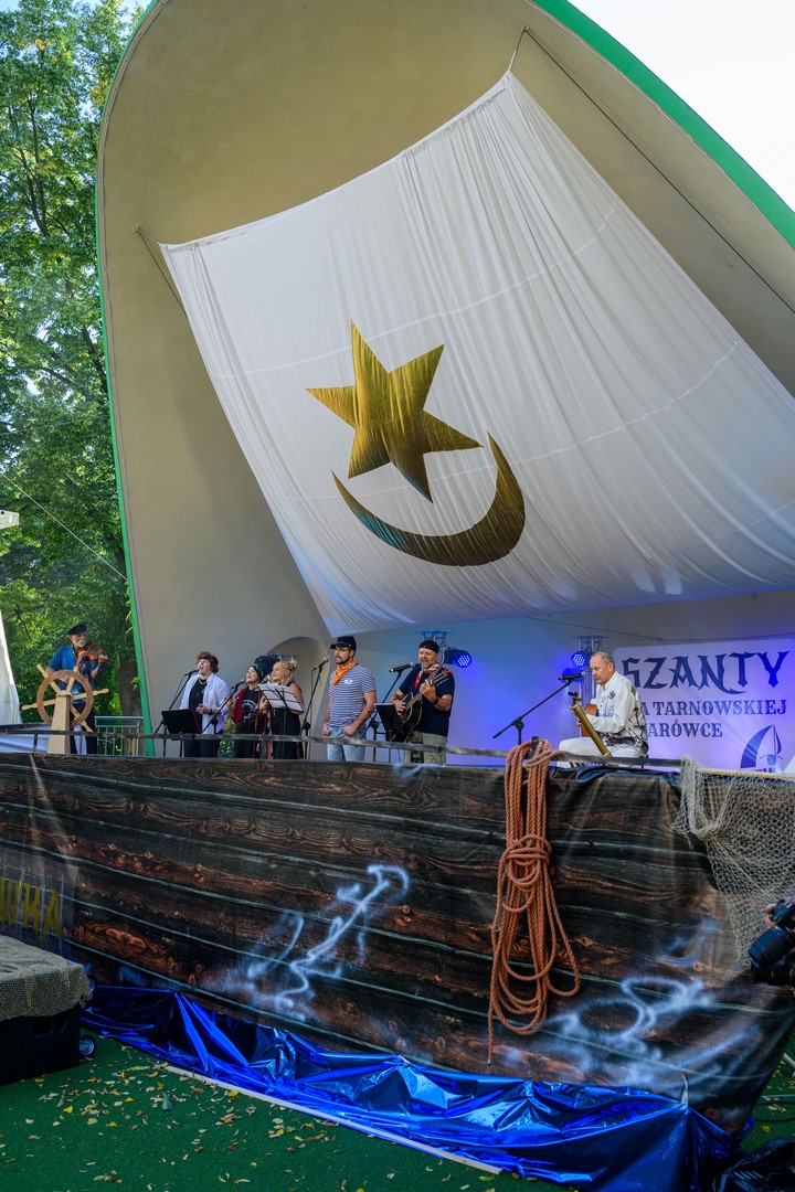 Fotorelacja z pierwszego dnia tegorocznych "Szant na Starówce" z udziałem zespołów Kliper Marzenie i obchodzącego jubileusz 30-lecia North Cape - Amfiteatr Letni, 22.08.2025