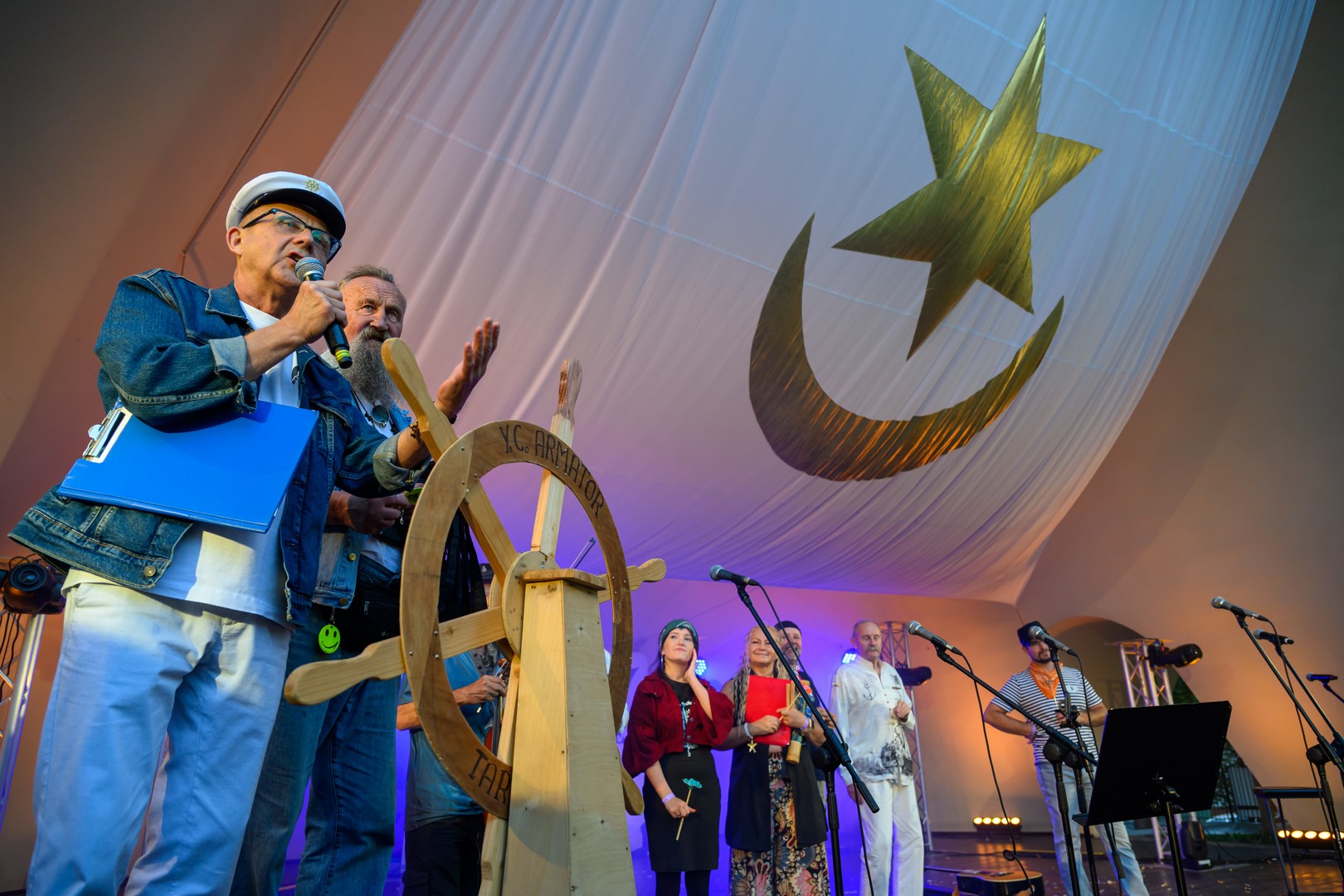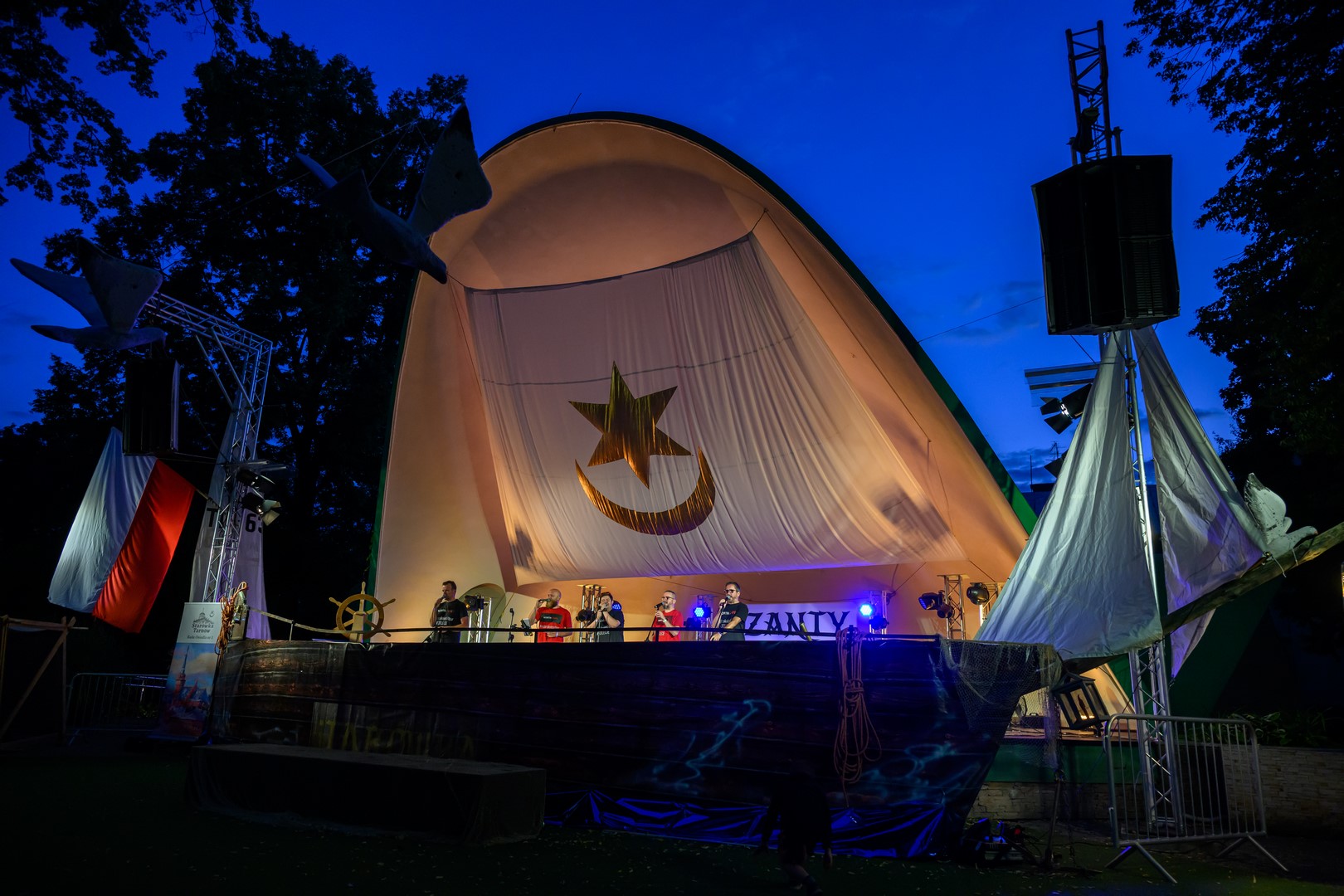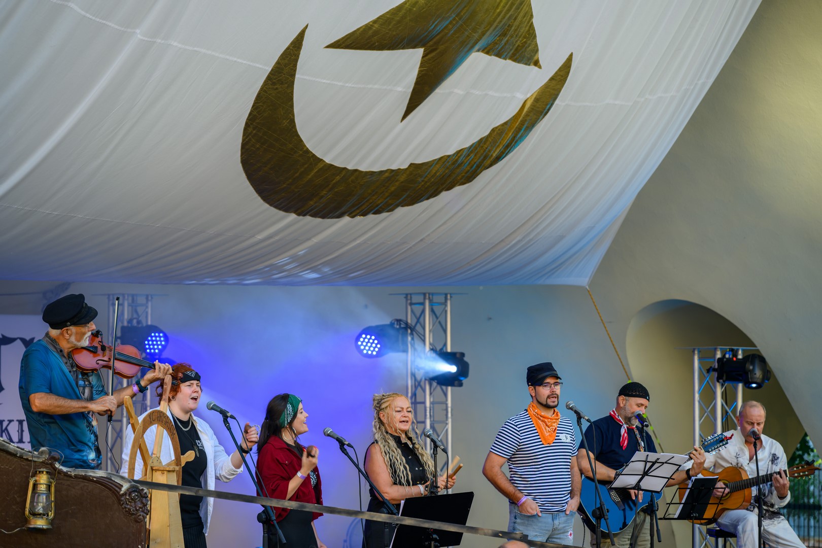 Fotorelacja z pierwszego dnia tegorocznych "Szant na Starówce" z udziałem zespołów Kliper Marzenie i obchodzącego jubileusz 30-lecia North Cape - Amfiteatr Letni, 22.08.2025