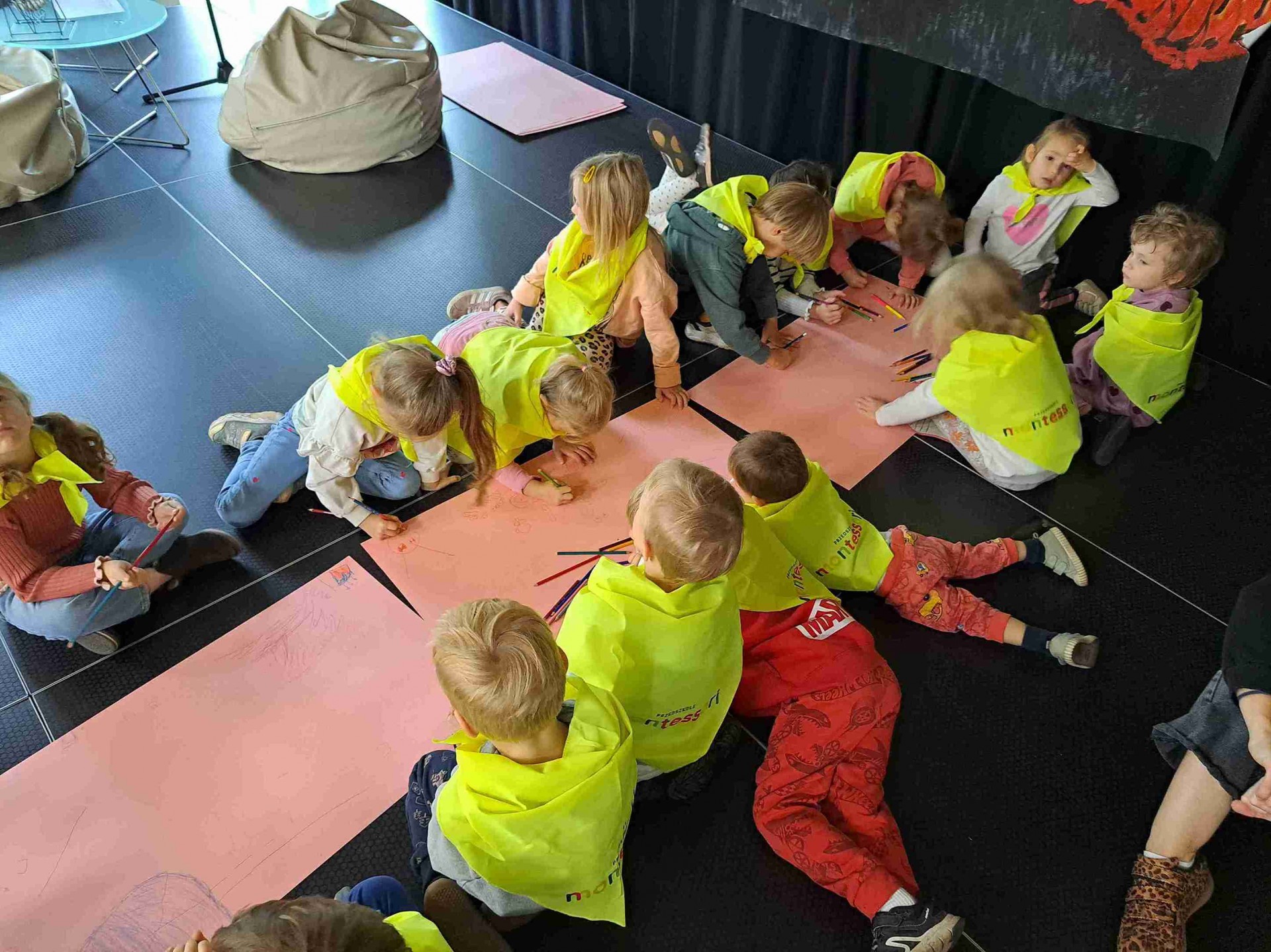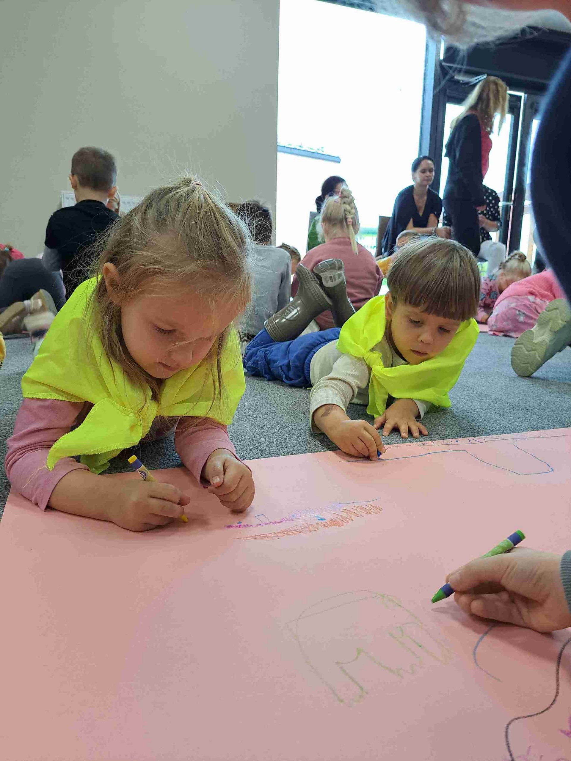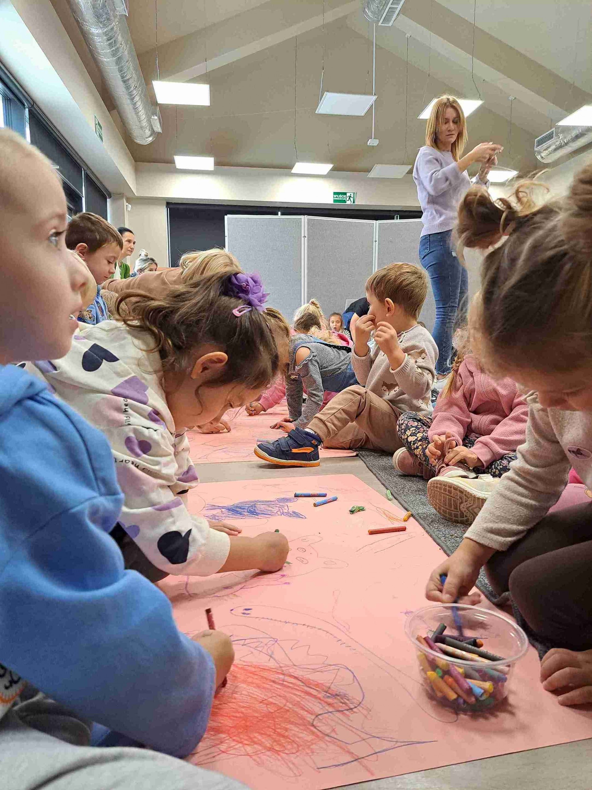 Dom Kultury odwiedziły przedszkolaki z Przedszkola Publicznego nr 18 oraz Przedszskola Montessori. Uwalnialiśmy ich wyobraźnię wieloma zmysłami. Dzieci słuchały niesamowitych historyjek czytanych przez Magdę Trusz, a podłoga Domu Kultury zamieniła się w ogromny blok rysunkowy.