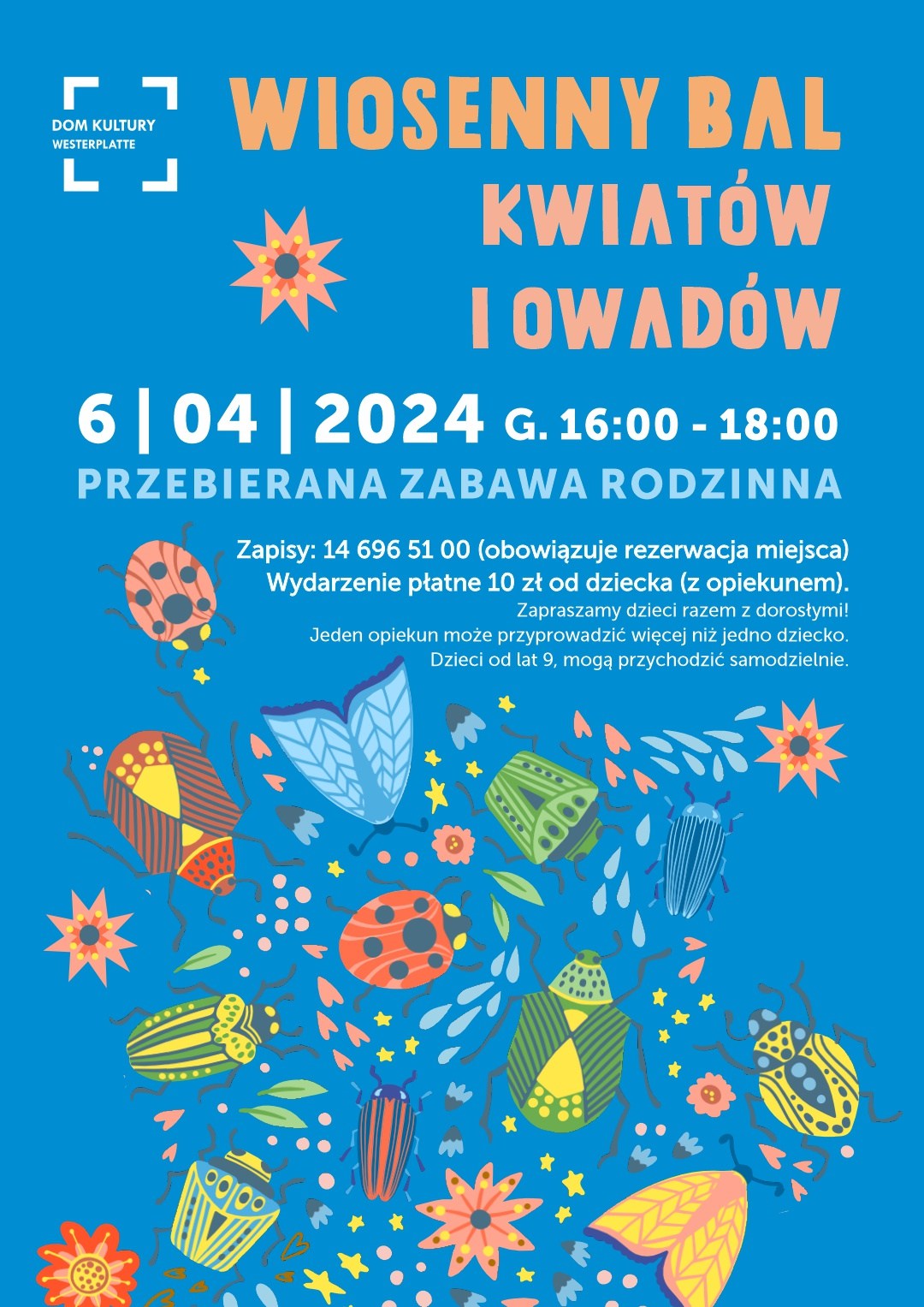 Wiosnę i słońce najlepiej przywoływać uśmiechem i radością – w przebraniu owadów i kwiatów! Tego popołudnia sala Dom.Ku zamieni się w wielką łąkę. Zapraszamy na bal maczki, pszczoły, biedronki, osty, jelonki rogacze – i co sobie wymyślicie. Nie zabraknie utworów z czterech pór roku roku Vivaldiego na przemarsz prezentacyjny. I oczywiście konkursu na najlepsze przebranie owadzie i kwiatowe! Zapewniamy zabawy i animacje rodzinne.