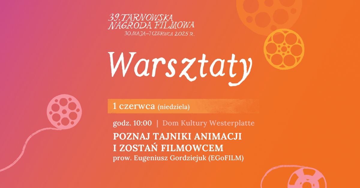 Kino to sztuka, ale też i ciężka praca, rzemiosło, które wymaga zarówno talentu, jak i wiedzy technicznej, organizacyjnej. Wspaniała kreacja aktorska to połączenie wrażliwości z samokontrolą, spontaniczności z powtarzalnością. Wspaniała animacja to połączenie wyobraźni ze żmudnym procesem, wymagającym przygotowania, skupienia i przeprowadzenia. Kino to sztuka, a sztuka to magia, ale za każdym magicznym zaklęciem kryje się receptura. Jaka? Jej arkana poznacie na warsztatach aktorskich i warsztatach animacji dla dzieci. Zapraszamy na warsztaty w ramach 39 Tarnowskiej Nagrody Filmowej.