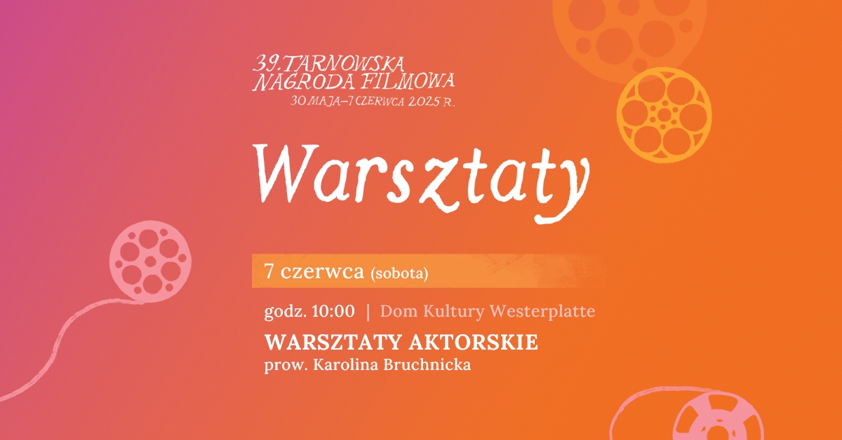 Najważniejsza umiejętność aktora? Wyczucie i szybkie reagowanie na to, co niesie chwila, zarówno w sobie, jak i z innymi. „Akcja-reakcja” to przestrzeń, w której rezygnujemy z nadmiernego myślenia i kontroli, odpuszczamy własną samoocenę, w zamian za to otwieramy się na autentyczne, spontaniczne działanie. Aktorstwo to nie tylko planowanie, ale bycie wrażliwym, otwartym i uważnym – przede wszystkim na partnera, ale również na zmieniającą się dynamikę sceny i inne okoliczności. Akcja wywołuje reakcję – a każda reakcja otwiera nową historię. Warsztaty aktorskie „Akcja-reakcja” przeznaczone są dla młodzieży i dorosłych. Poprowadzi je aktorka Karolina Bruchnicka, znana m.in. z filmów „Córka trenera” Łukasza Grzegorzka czy „Wszystkie nasze strachy” Łukasza Rondudy i Łukasza Gutta. Karolina przybliży praktyczne aspekty procesu twórczego i pozwoli uczestnikom lepiej zrozumieć rolę aktora w kreowaniu dzieła filmowego.