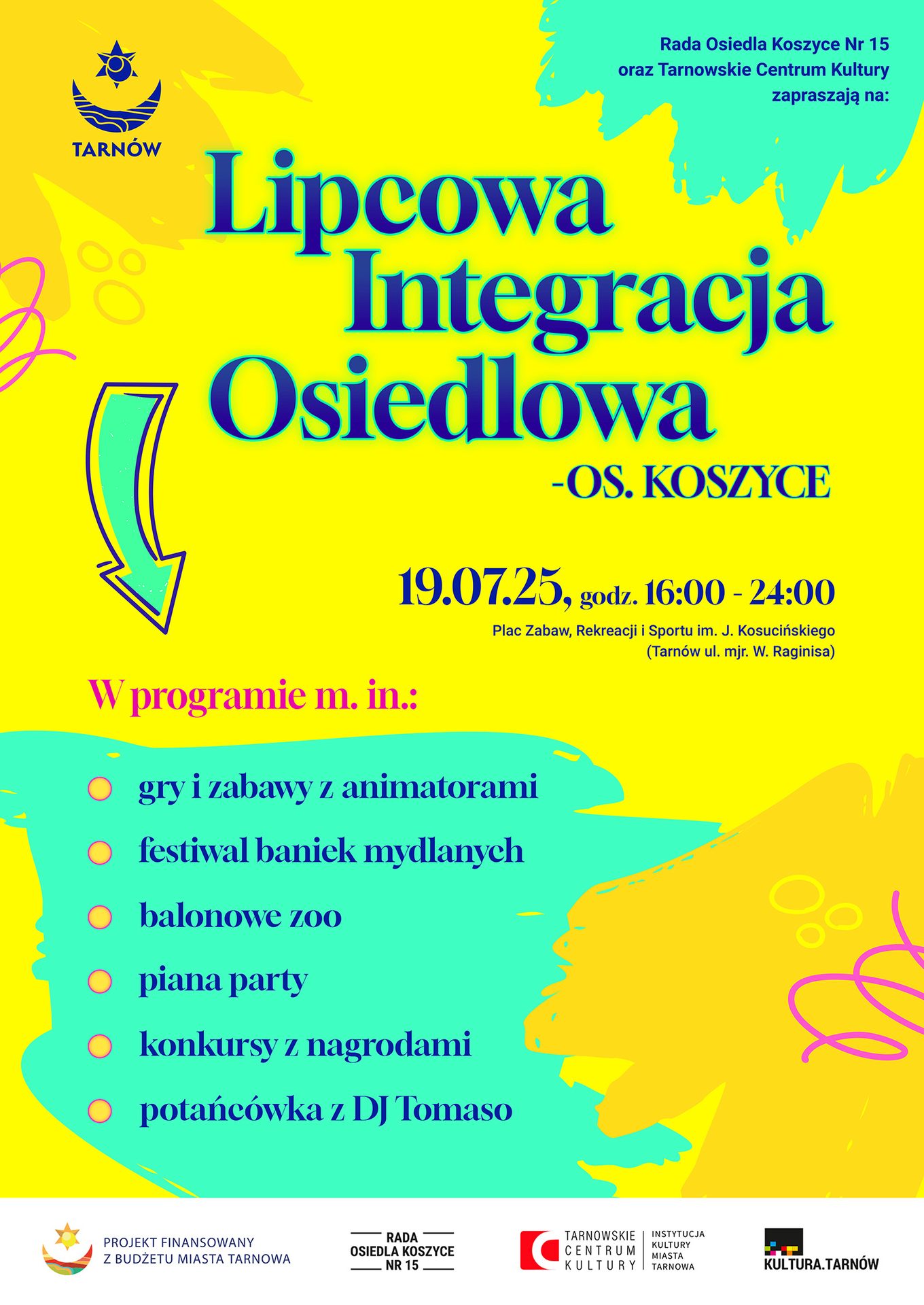 W sobotę 19 lipca zapraszamy mieszkańców Osiedla Koszyce na piknik integracyjny, który odbędzie się na placu rekreacyjnym przy ul. Raginisa. Program wydarzenia został przygotowany z myślą o całych rodzinach – będą atrakcje dla dzieci, konkursy z nagrodami, a wieczorem potańcówka na świeżym powietrzu.
