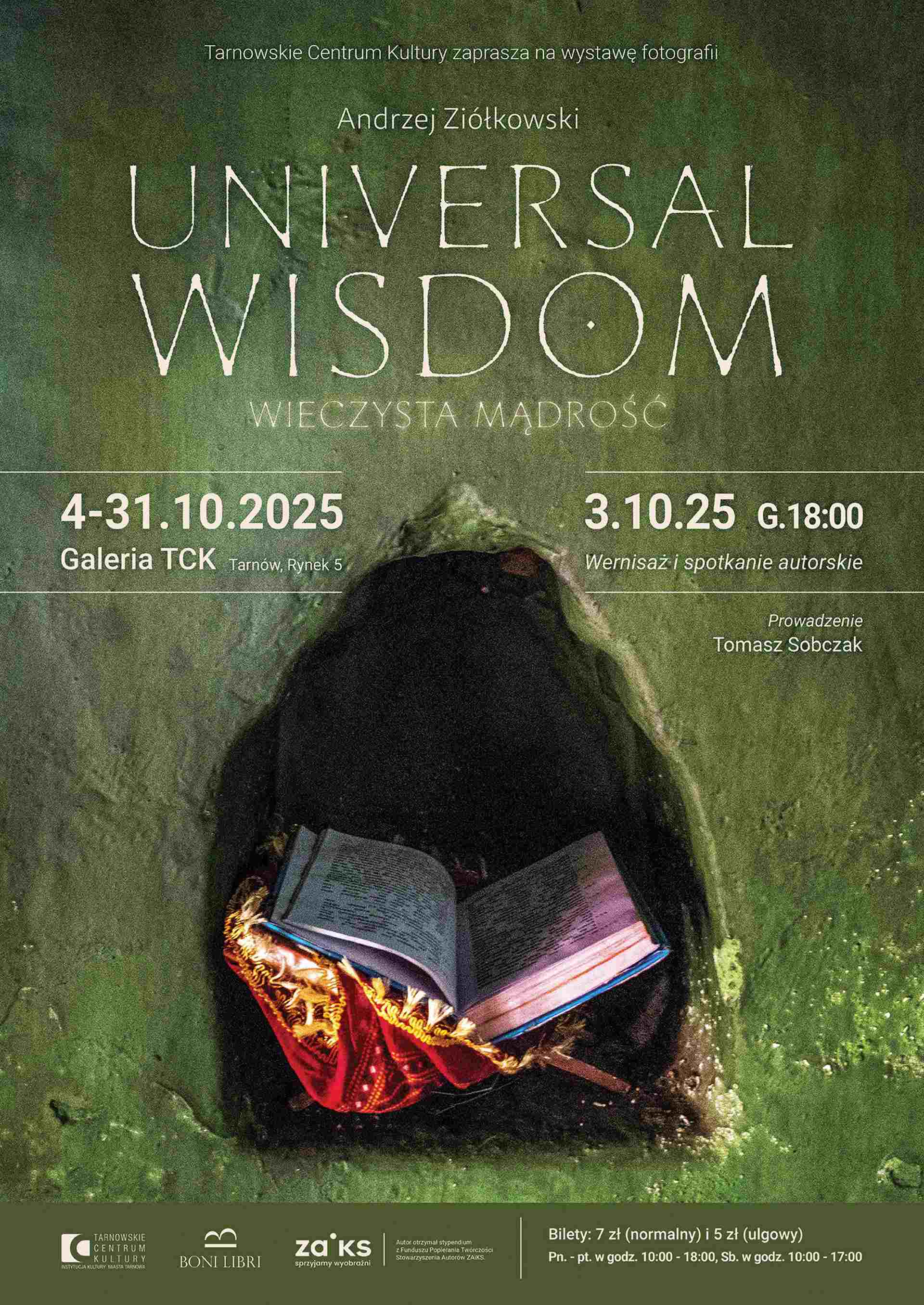 Tarnowskie Centrum Kultury zaprasza na wystawę fotografii Andrzeja Ziółkowskiego „Universal Wisdom. Wieczysta Mądrość”, który przemierzał kraje Azji Południowo-Wschodniej, Indie, Nepal i Tybet, starając się uchwycić w fotografii uniwersalny wymiar ludzkiej duchowości, bez względu na religijną przynależność.