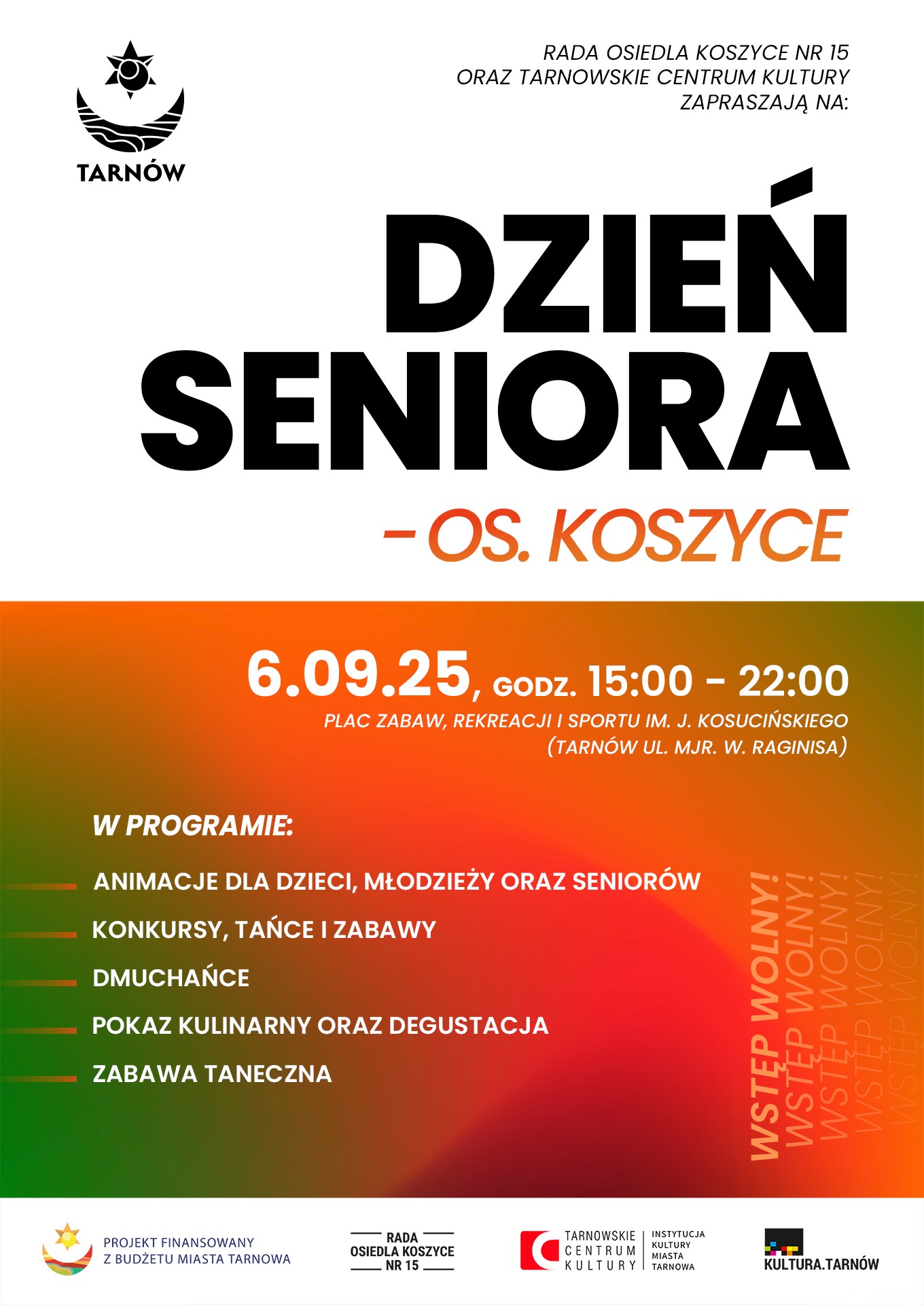 Dzień Seniora ma charakter otwarty i bezpłatny – zapraszamy wszystkich mieszkańców Osiedla Koszyce i okolic do wspólnego spędzenia czasu w serdecznej atmosferze.